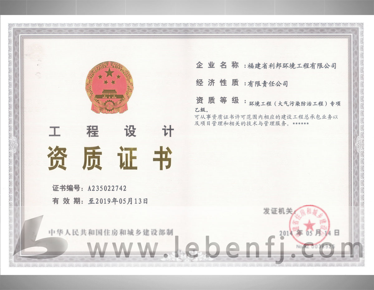 • 環(huán)境工程設(shè)計專項資質(zhì)(乙級)